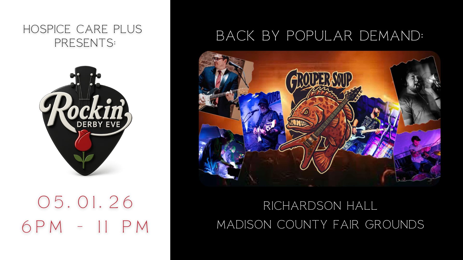 Join us for the Rockin’ Derby Eve Benefit Party on Friday, May 1, 2026, from 6–11 PM at Richardson Hall on the Madison County Fairgrounds (3237 Old Irvine Rd., Richmond, KY).