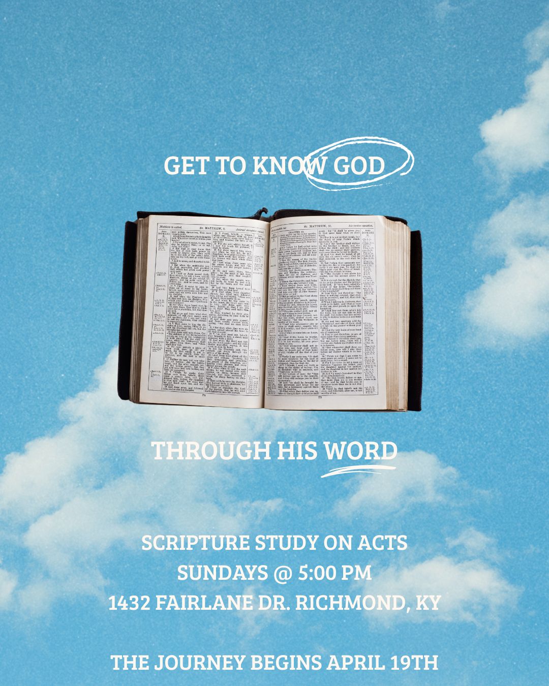New Bible Study group starting April 19th!