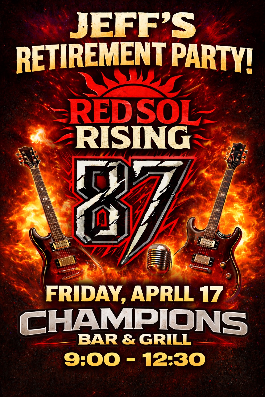 Alright folks we only got a week before a huge night! Jeff Lowry has finally retired and want to host a big celebration for him! We will be gladly sharing the stage with our good buddies Exit 87 at the one and only Champions Bar & Grill 40475 ! Music starts at 9, see you guys there!!